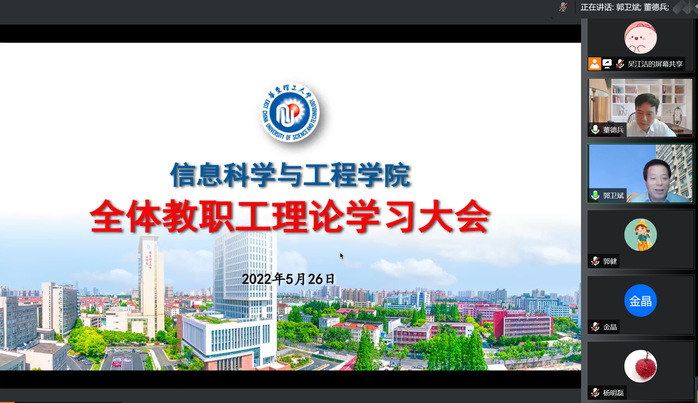 最后,郭卫斌作总结发言。他希望,信息学院全体教职工通过此次学习,深入领会习近平新时代中国特色社会主义思想的核心要义,推动党的十九届六中全会精神在学院落地见效,将会议精神贯穿在学院事业发展的各项工作中,立足本职岗位,发挥自身特长,积极履职尽责,全力以赴地完成疫情防控和本学期目标任务,推动学院实现高质量发展,以崭新的精神风貌迎接党的二十大胜利召开和学校七十周年校庆!